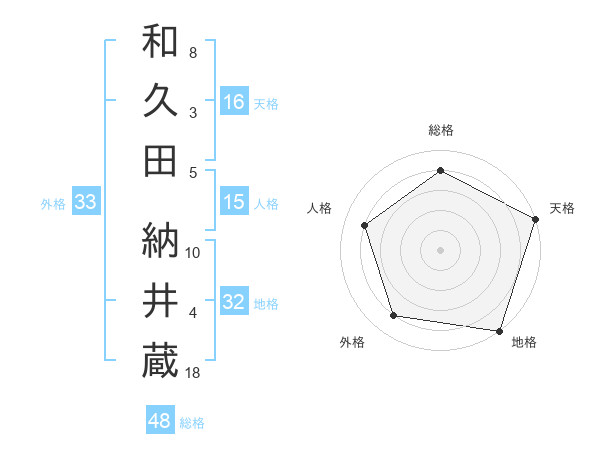 和久田 納井蔵さんを姓名の画数から五運を鑑定