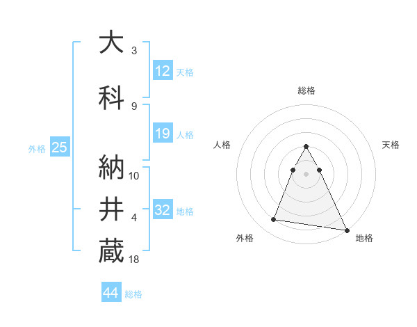 大科 納井蔵さんを姓名の画数から五運を鑑定