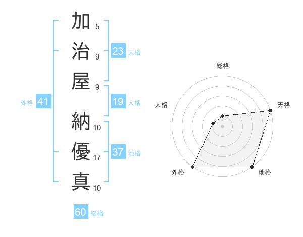 加治屋 納優真さんの天格は23画の5点!