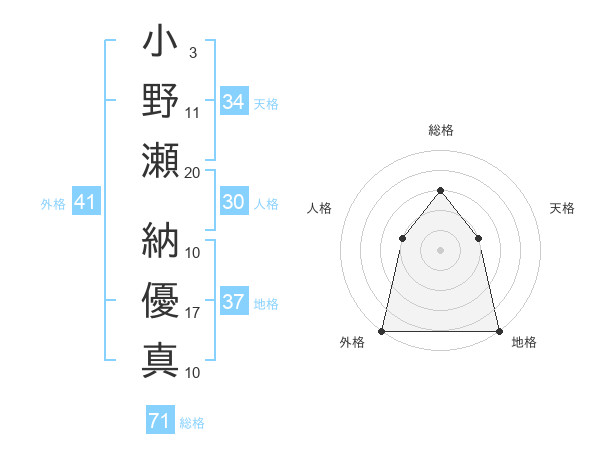 小野瀬 納優真さんの総格は71画の3点!
