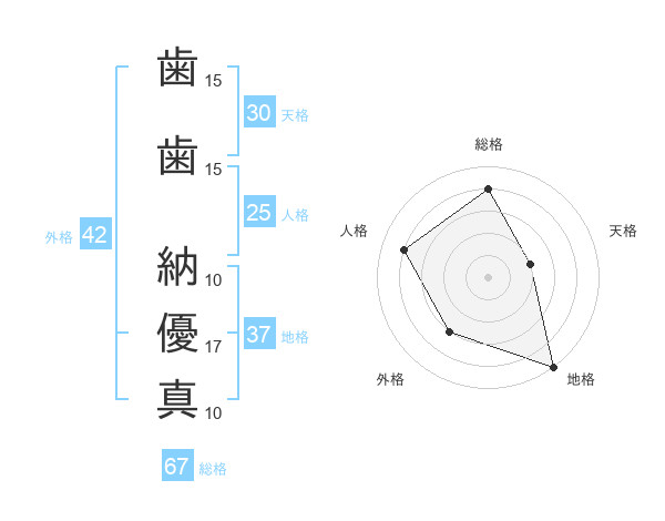 歯歯 納優真さんの総格は67画の4点!