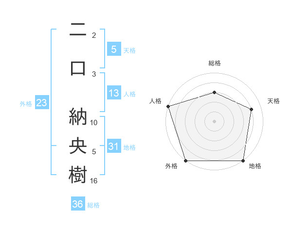 二口 納央樹さんを姓名の画数から五運を鑑定