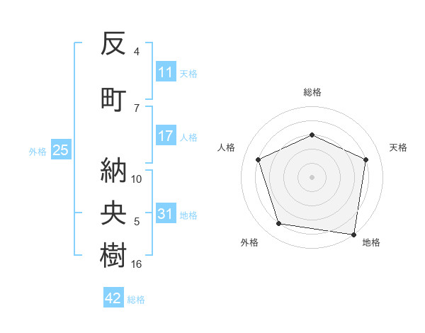 反町 納央樹さんを姓名の画数から五運を鑑定