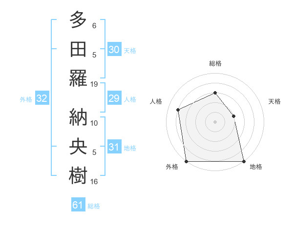 多田羅 納央樹さんを姓名の画数から五運を鑑定