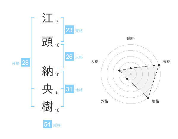 江頭 納央樹さんを姓名の画数から五運を鑑定