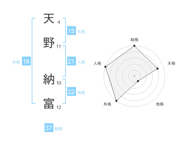天野 納富さんの総格は37画の5点!