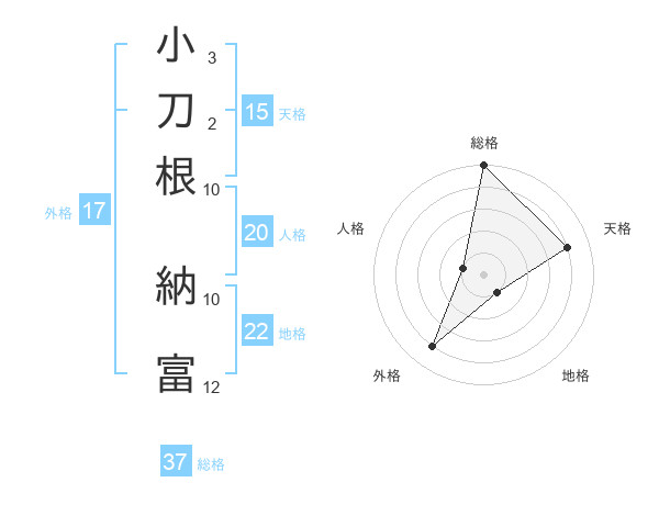 小刀根 納富さんを姓名の画数から五運を鑑定