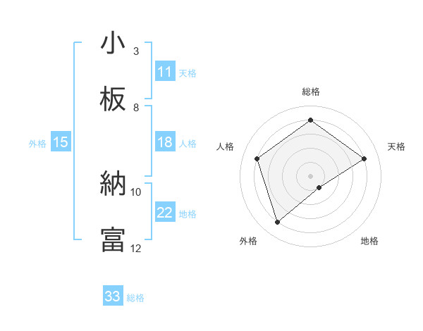 小板 納富さんの総格は33画の4点!