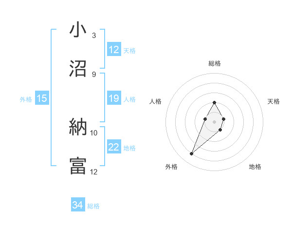 小沼 納富さんの地格は22画の1点!