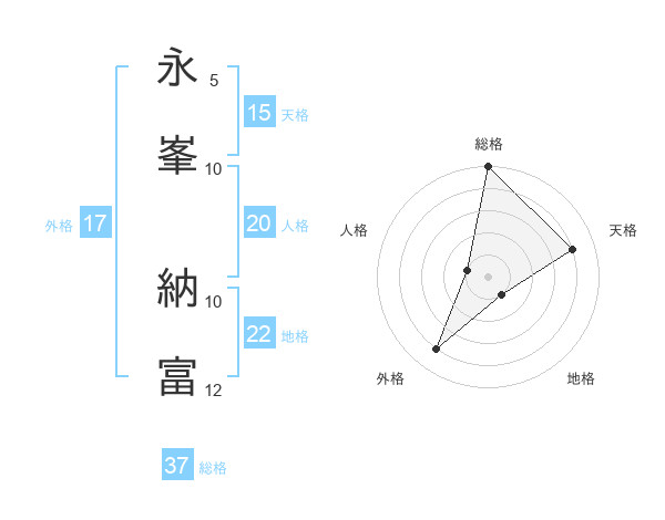 永峯 納富さんの天格は15画の4点!
