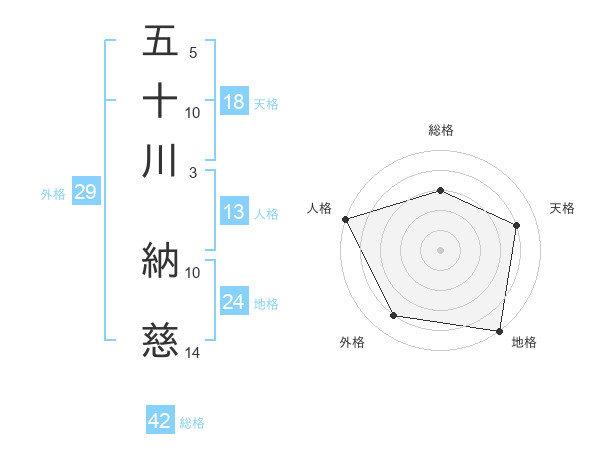 五十川 納慈さんを姓名の画数から五運を鑑定