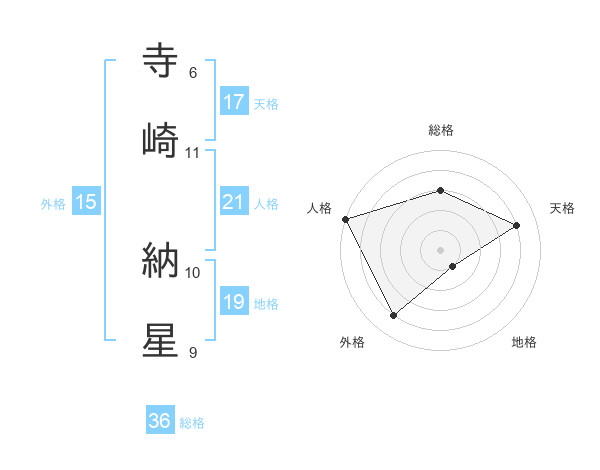 寺崎 納星さんの天格は17画の4点!