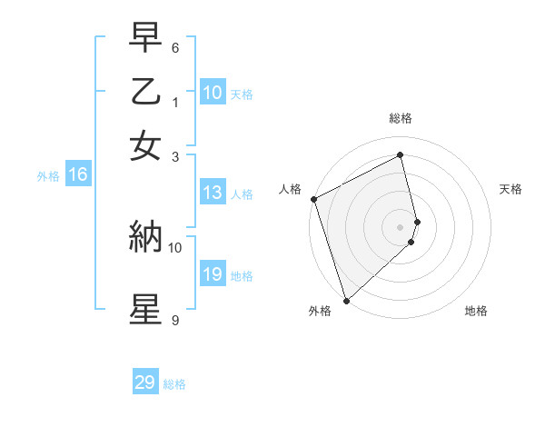 早乙女 納星さんを姓名の画数から五運を鑑定