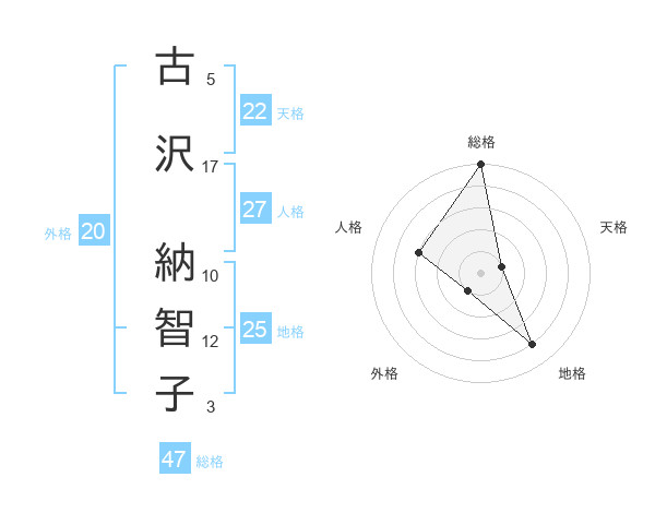 古沢 納智子さんを姓名の画数から五運を鑑定