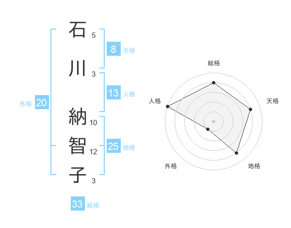 石川 納智子さんの天格は8画の4点!