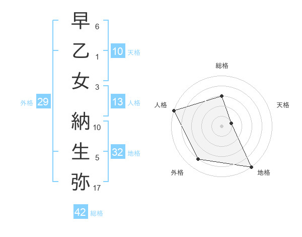 早乙女 納生弥さんを姓名の画数から五運を鑑定