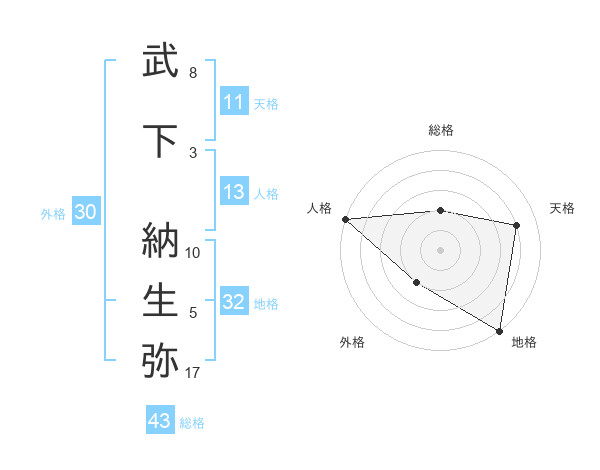 武下 納生弥さんを姓名の画数から五運を鑑定