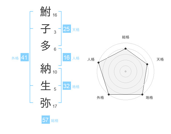鮒子多 納生弥さんの外格は41画の5点!