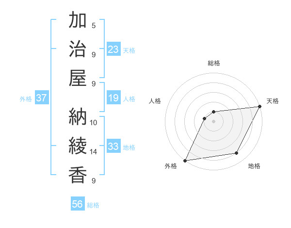 加治屋 納綾香さんを姓名の画数から五運を鑑定