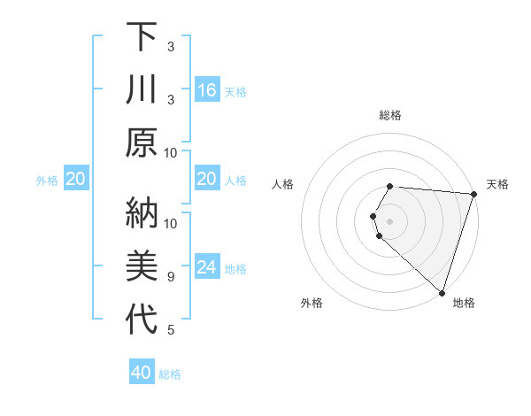 下川原 納美代さんを姓名の画数から五運を鑑定