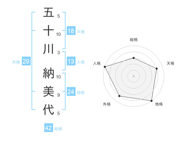 五十川 納美代さんの地格は24画の5点!