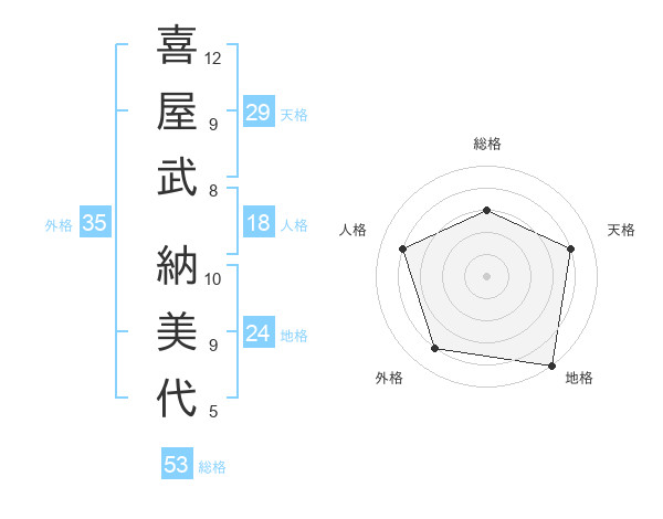 喜屋武 納美代さんを姓名の画数から五運を鑑定