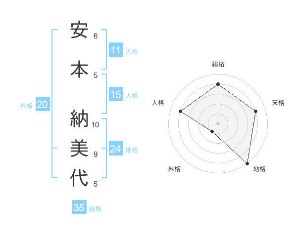 安本 納美代さんの天格は11画の4点!