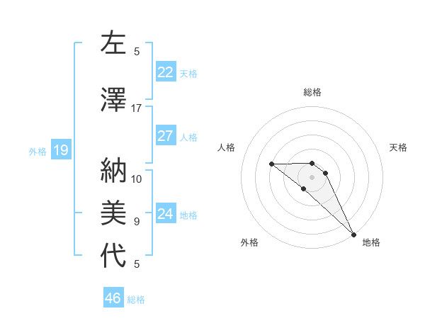 左澤 納美代さんの地格は24画の5点!