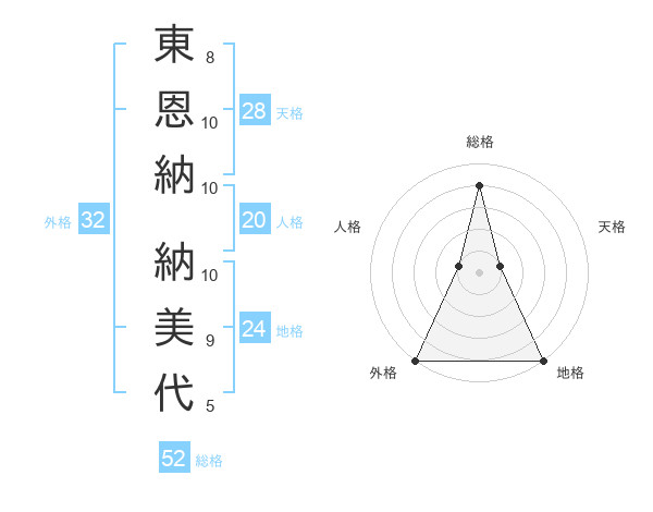 東恩納 納美代さんの総格は52画の4点!