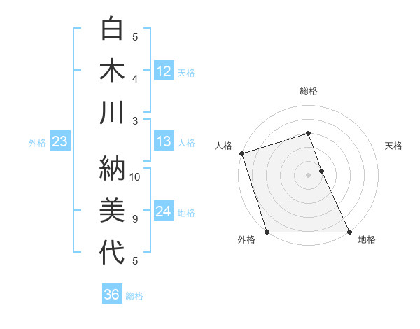 白木川 納美代さんを姓名の画数から五運を鑑定