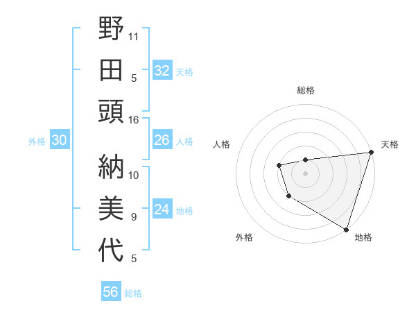 野田頭 納美代さんを姓名の画数から五運を鑑定