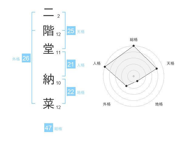 二階堂 納菜さんを姓名の画数から五運を鑑定