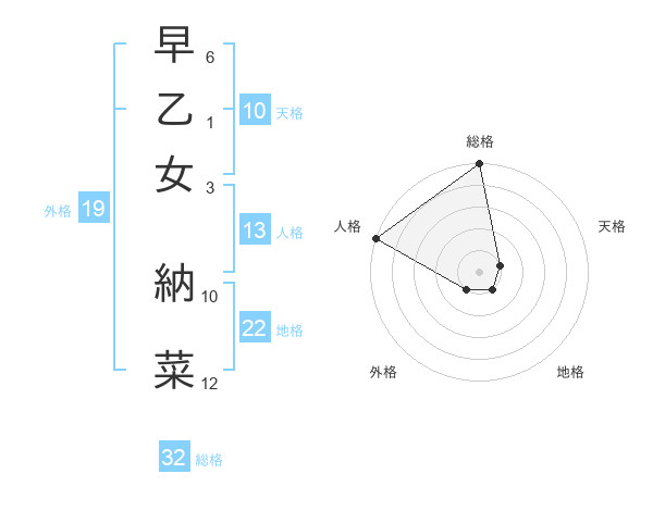 早乙女 納菜さんを姓名の画数から五運を鑑定