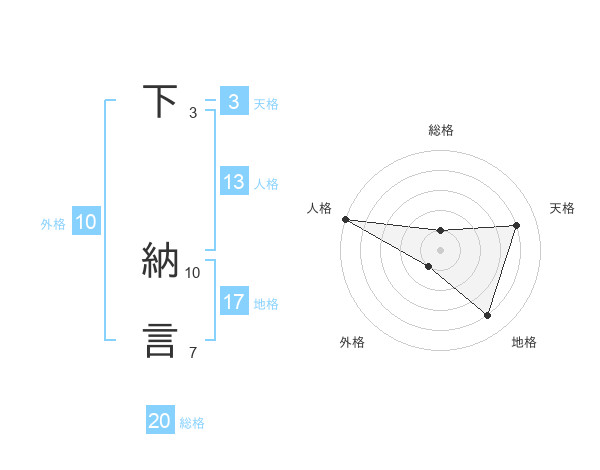 下 納言さんの総格は20画の1点!