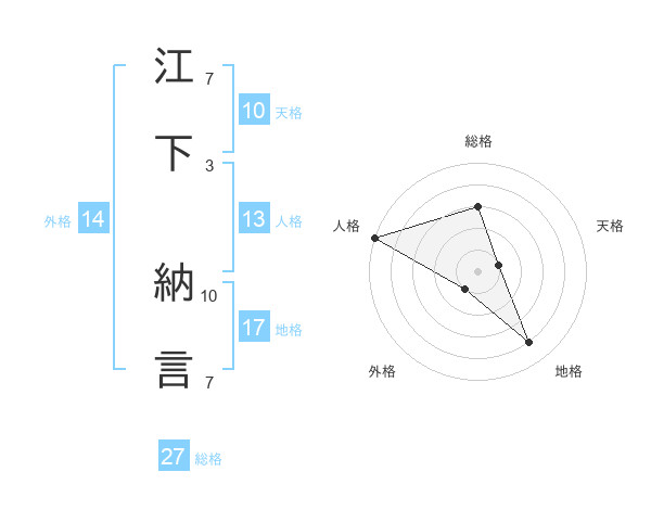 江下 納言さんの総格は27画の3点!