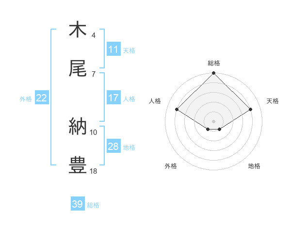 木尾 納豊さんを姓名の画数から五運を鑑定