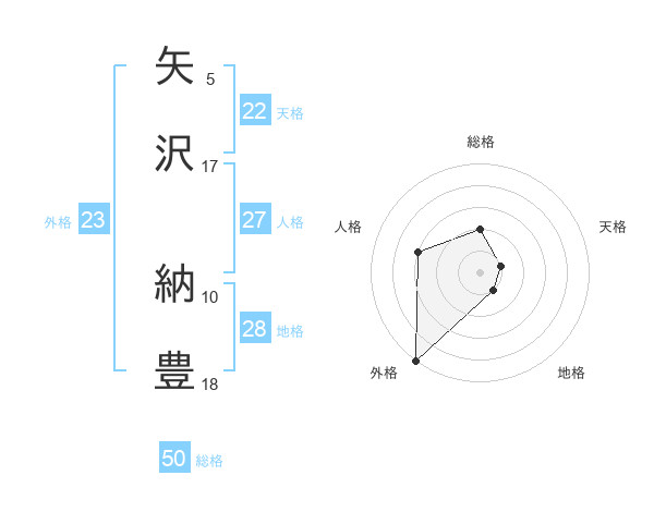 矢沢 納豊さんの天格は22画の1点!