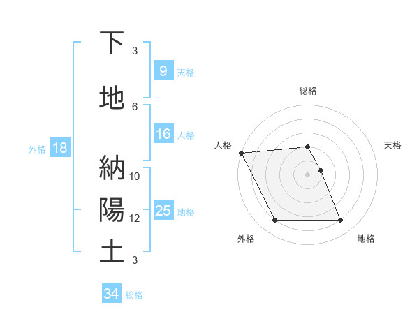 下地 納陽土さんを姓名の画数から五運を鑑定