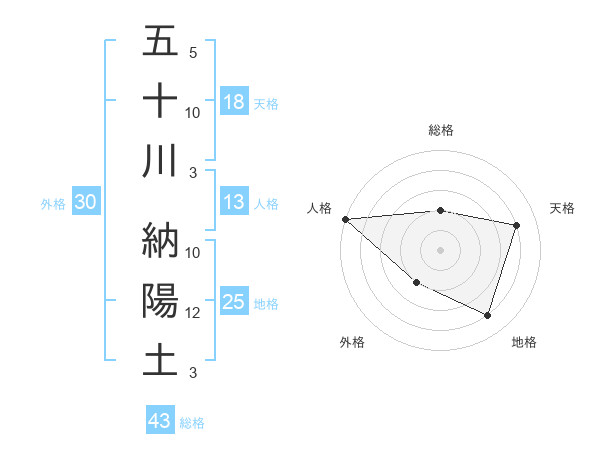 五十川 納陽土さんを姓名の画数から五運を鑑定
