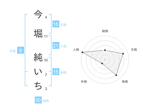 今堀 純いちさんを姓名の画数から五運を鑑定