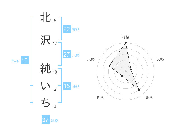 北沢 純いちさんの総格は37画の5点!