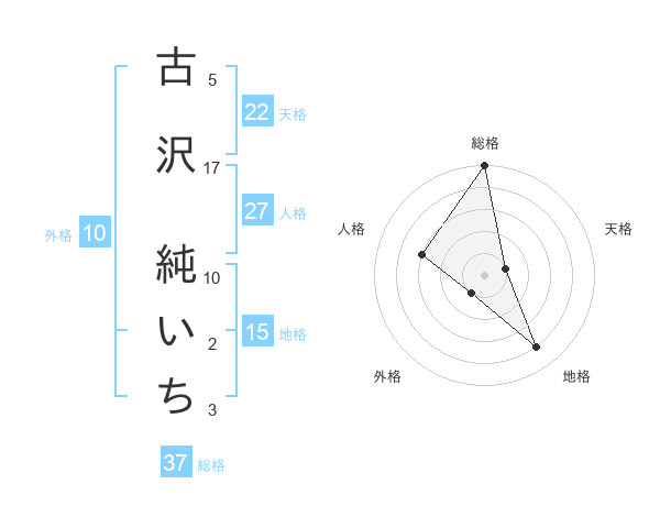 古沢 純いちさんを姓名の画数から五運を鑑定