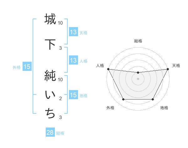 城下 純いちさんの天格は13画の5点!