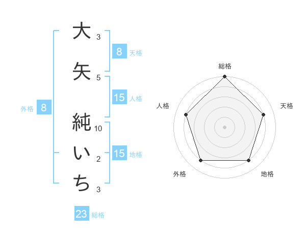 大矢 純いちさんの総格は23画の5点!
