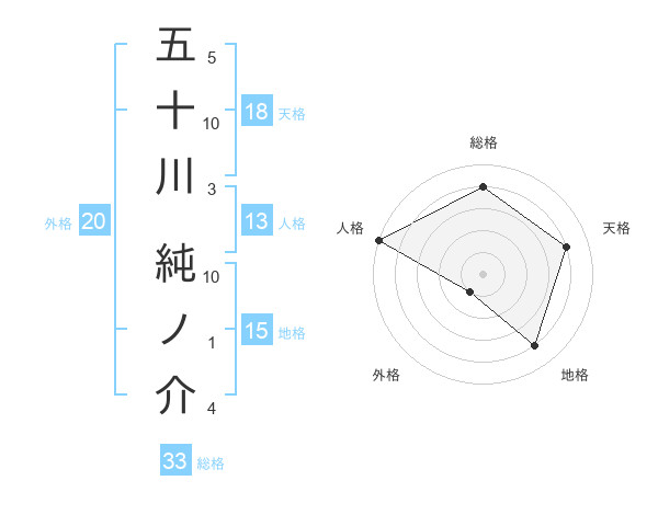 五十川 純ノ介さんを姓名の画数から五運を鑑定