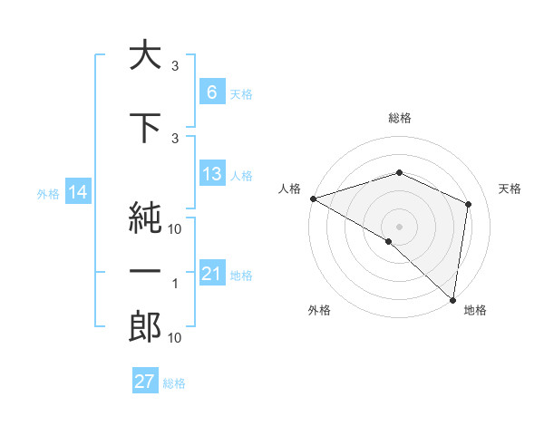 大下 純一郎さんを姓名の画数から五運を鑑定
