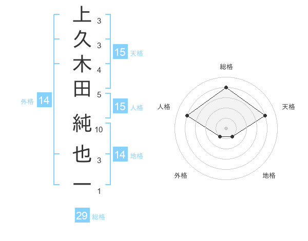 上久木田 純也一さんを姓名の画数から五運を鑑定