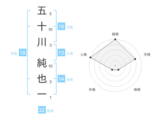 五十川 純也一さんを姓名の画数から五運を鑑定