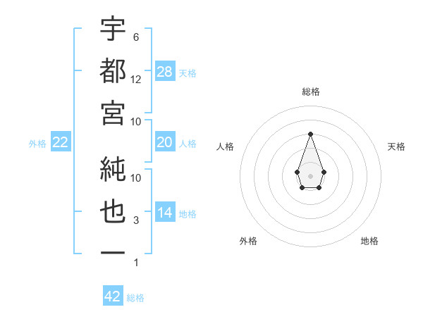 宇都宮 純也一さんを姓名の画数から五運を鑑定