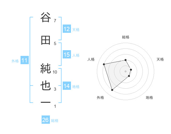 谷田 純也一さんを姓名の画数から五運を鑑定
